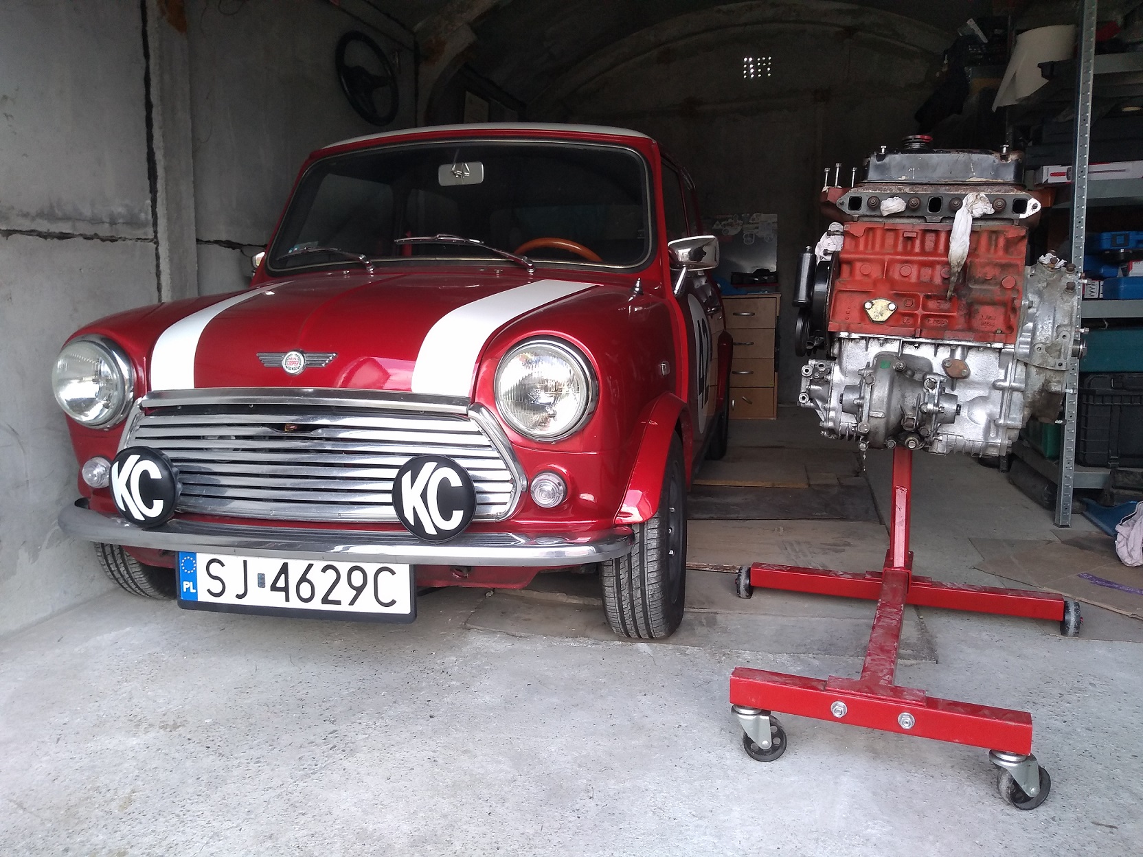 - karoserie (i s papíry) původně z 1.3 karburátorového Coopra z roku 1991 - komplet vyvařená a nalakovaná na červenou metalízu co je na nových Meganech. Střecha a pruhy bílá slonovina z palety Fiatu 500. Důvodem bylo, že původní majitel měl 998, ale s karoserií ve slabém stavu, takže se rozhodl sehnat druhou, tu komplet udělat a pak prohodit jen motor. Motor samotný má najeto od generálky cca 4000km.