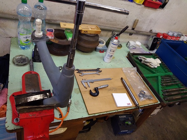 Práce pokračují a dokonce jsem si udělal i trošku času.Zasedl jsem k pc :compueter: a stáhl pár fotek. Zde je tedy můj postup prací. Zadní rám je opískován, sem tam se našla dírka a tak se momentálně vyvařuje. Ramena jsou po laku a namontované nové osičky. Ostatní díly též po laku a připraveny k montáži. Ještě čekám na nějaké drobnosti z anglie (a možná dá pán bůch i od O.T.) a bude se kompletovat.