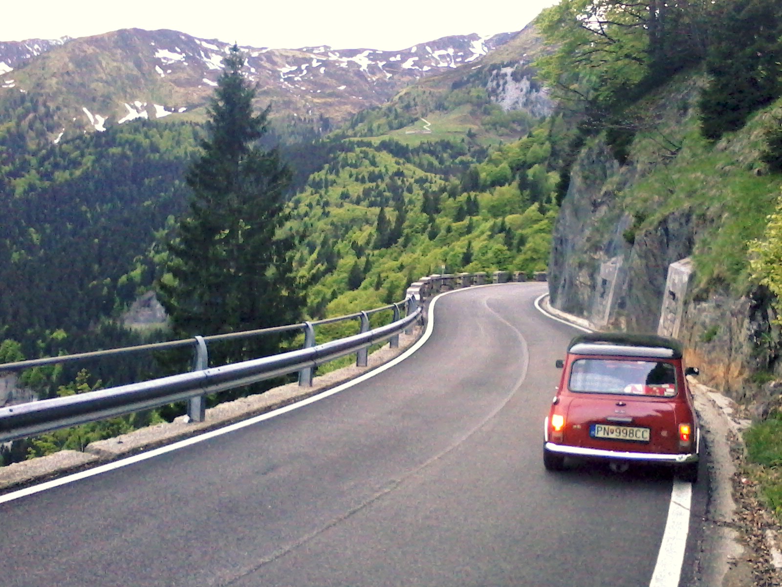 13.5.2013 Po nachystani vsetkeho potrebneho (stan, spacaky, jedlo, rychl.var.konvica, plavky!, nahr. diely, cptn M ...) sme v pondelok 13.5.2013 vyrazili rano o 9:00 z piestan, smer Rakusko. S tym ze sa ten den dostaneme do Talianskych Alp. V plane bolo prejist Rak. po dialnici a v Taliansku sa drahym autostradam vyhybat. Aj tak bolo. Prvu ,,kulturnu,, zastavku sme mali okolo obeda v mestecku Stainz pri Graz. Bohuzial uz pomaly zvonku chatrajuce automobilove muzeum Karla Rittera, byvaleho automobiloveho zavodnika, vsak vo svojich utrobach skrivalo cez 200 aut, ktore su uz par mesiacov na predaj... Pan Ritter s muzeom konci a vsetko predava, tam sme stravili asi 2 hodiny, a mna vazne bolela sanka, co som mal skoro stale otvorene usta z tych klenotov.... Nadhera.. Po navsteve muzea sme sa pohodovym tempom asi 100kmh presuvali po dialnici smer Klagenfurt az ku Worthersee, kde po odboceni z dialnice a sme si dali kavicku na terase... pol hodinka prestavka a valime dalej. Pred It. hranicami sme z dialnice odbocili smer Hermagor a vydali sa smer zapad, teda obisli popri hranici Alpy. Do Talianska sme sa dostali cez horsky prechod Plockenpass, kde zacal konecne ,,zatackovy raj,,