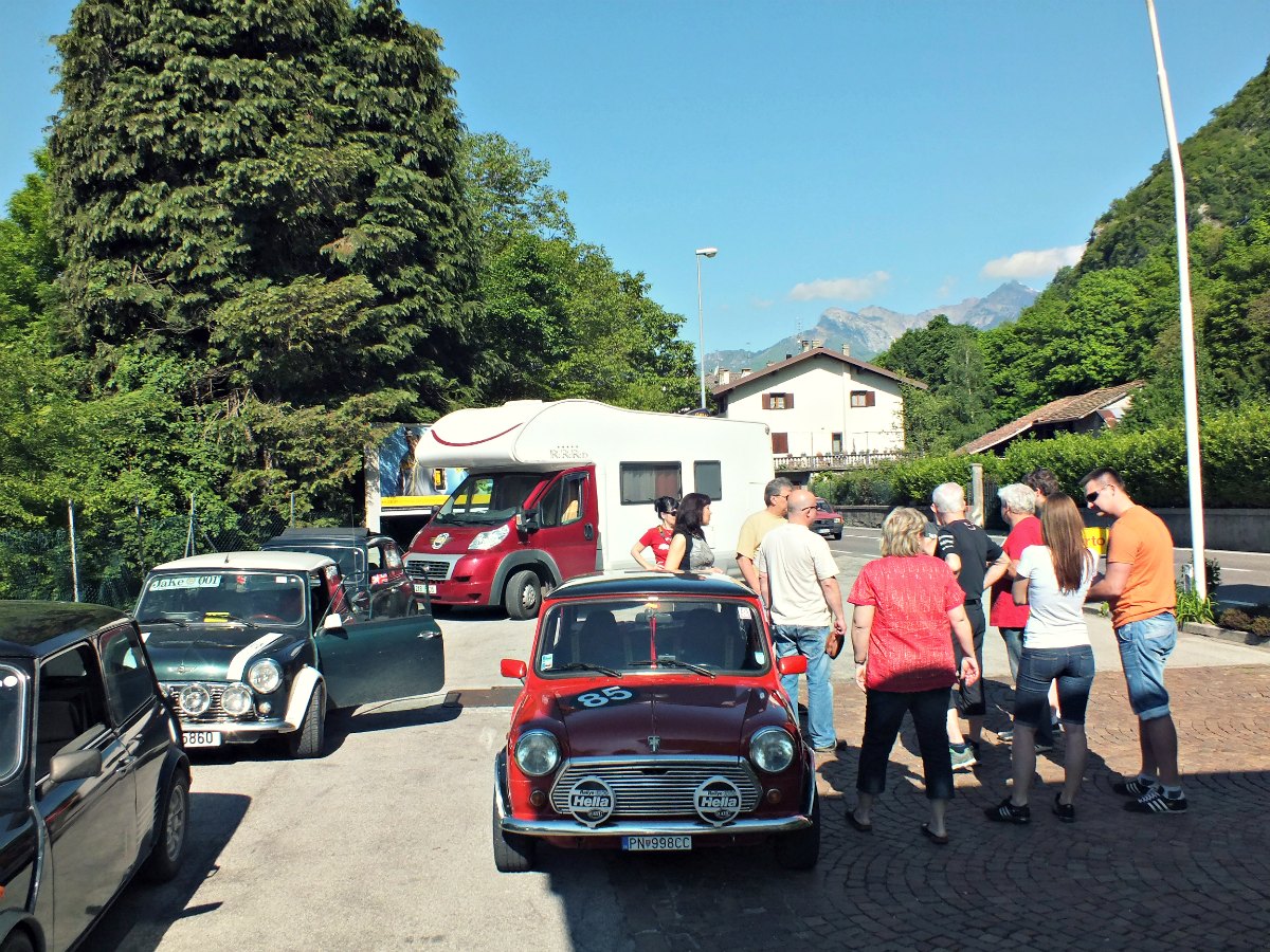 14.5.2013 Po rannej kave a vyrazame smer Lago di Garda, ked po cca 20 minutach jazdy stretavame na benzinke skupinku minikov z Mini-Louny. Zastavujeme, chvilku kecame, ze my smer Lago a oni smer Benatky, ale ze sa vidime za par dni v Mugelle, prajeme si navzajom stastnu cestu a pokracujeme. Po par kilometroch sa pred nami objavuju nadherne ostre vrchy Dolomitov, pricom kazdu chvilu stojime a fotime, a fotime a fotime. Nadherna priroda, prazdne cesty a super slnecne pocasie. Prechadzame mestami Belluno, Feltre, Borgo, pricom rovnych usekov je velmi malo, sama zakruta... Trochu oneskoreny obed okolo 15:00 hod sme mali na malom parkovisku pri ceste niekde v okoli mestecka Folgaria. Po vydatnom obede zo zasob domovych sme to uz nemali k jazeru Lago di Garda daleko. Asi po hodinke sme uz parkovali na severnej strane jazera na vyhliadke v oblasti Nago-Torbole a robili prve fotky jazera Garda do albumu. V plane sme mali navstivit vodopady Cascata del Varone, kam sme sa dostali okolo 17:00. Maly prirodny areal, avsak s vysokymi nikolko 10tok metrov vodopadmi. Krasne prostredie a velmi osviezujuce , co nam prislo celkom vhod po celom dni v miniku . Po asi pol hodinke prechadzaniav areali sme kupili magnetku a pohladnicu a vydali sa hladat kemp na pobrezie jazera. Po cca 15 km sme nasli pred mesteckom Malcesine kemp Tonini, kde sme zakotvili. Kemp bol velmi malinky, mozno 30 parciel ale o to prijemnejsi. Tichy, cisty, upraveny, 28 eur noc pre dvoch , auto a stan. V kempe sme si nasli miesto vedla poliakov Macek a Gozsa z Wroclavi, ktori taktiez so svojim hnedym Mini Estate mierili do Mugella. Prehodili sme par slov, postavili stan a hrdo zvladnutych dalsich par stoviek kilometrov zapili poharikom Morgana a Coly.