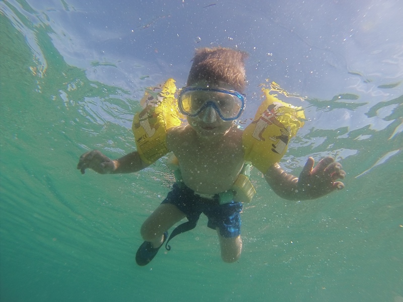 . Na dolním parkovišti jsou jen turistické autobusy, které jezdí jako kyvadlo a my. Jedna hromadná fotka a následná prohlídka parku. Po ukončení prohlídky nás čeká odjezd do vesničky Brodarica, kde na nás čeká závoz a tento nás převeze na ostrov Krapanj. Na ostrově nás kapitán trošku provede a následně zakotvíme v místní hospůdce, kde pro nás šéfkuchař připravuje pohoštění. Na stole stojí dvě ledově vychlazené sklenice, jedna čirá a jedna žlutá, kdy se mamka rozhodne nás občerstvit a nachystá 3 kelímky s ledem. Naštěstí jsem včas zareagoval a před nalitím místní Rakyje do připravených pohárků ji zastavil, což vyvolalo všeobecné veselí. Chvíli na to se začalo nosit jídlo, opět to začalo pečivem a následoval tác kuřecích řízků, smažených olihní, smažených rybiček, nakládaných rybiček, zeleniny a mísa rizota s mořskými plody a druhá plná těstovin s chobotnicí. Po vydatném jídle následovala koupačka a potápění, při kterém se konečně podařilo najít i nějakého toho ježka na poličku. Závoz jezdil co půl hoďky a tak jsme věděli, že až přijede, musíme se nachystat a pojedeme. Bohužel k našemu překvapení měl další cestu zpět na pevninu naplánovánu až za hodinu a půl. Naštěstí s námi byl také náš ubytovatel Damir a ten nám zařídil odvoz zpět. Sice se jednalo o malou bárku, dle majitele pro 6 lidí, já to viděl tak na 3 + řidič. Na loď jsme nasedli hned po řidiči v 5 dospělých + Táda a ještě čekali na Zuzku s přítelem. Konečné osazení lodi 7 dospělých + 1 dítě, řidič a kapitán Damir na přídi. Loď plula tak, že boky nebyli ani 20 cm nad vodou, takže voda stříkala všude. V půlce cesty se někteří rozhodli, že na ně moc stříká a sednou si jinak. Výsledkem bylo rozhoupání lodi a menší adrenalinový zážitek. Poté dojezd na apartmán a večerní posezení a pokec opět ve známé restauraci.
