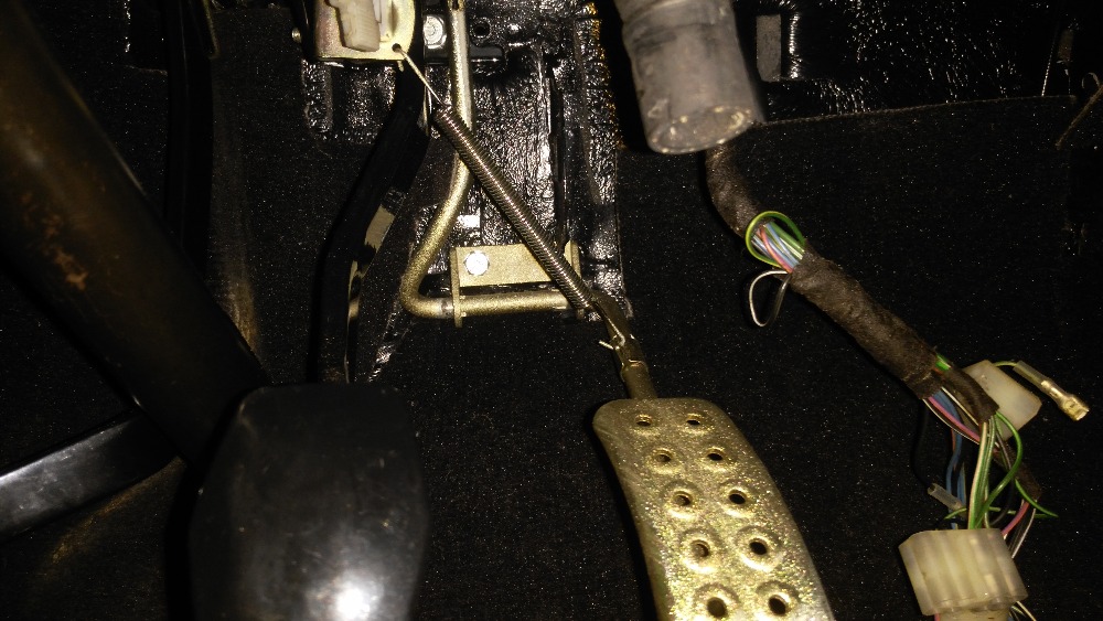 Pedál je přidělaný na 2 šroubech viz foto. Ideální bude vyháknout plynové lanko a pružinku, povolit šroubky, vyndat pedál, očistit ho drátěným kartáčem, nebo ho nechat opískovat a následně pozinkovat.