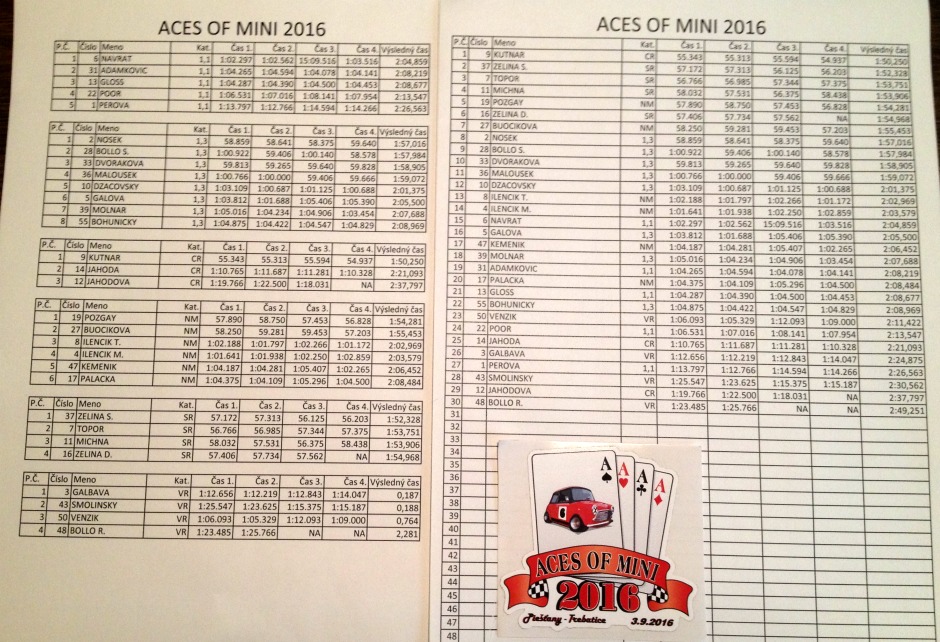 Tak ako pominulé 3 roky, aj tento rok je Aces of Mini zaradené v amatérskom seriály pretekov klasik mini ,,MOTÁK 2016" s koef. 2. (viď.