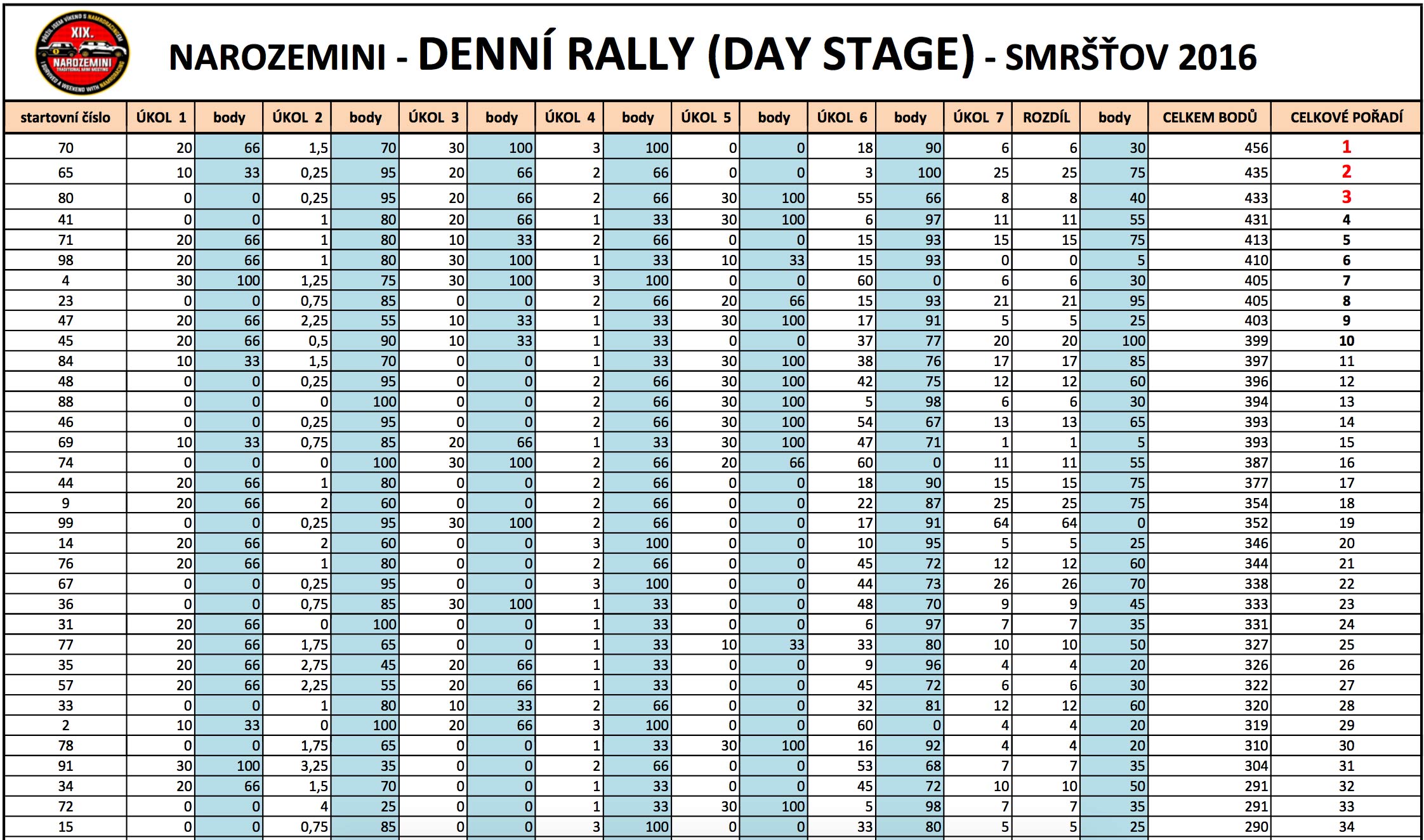 Rallye organizačně odsýpala jako na drátkách, ikdyž možná nějaké to "škobrtnutí" by nabídlo možnost na další setkání a diskutování s účastníky nad úkoly i na trati. Ikdyž na druhou stranu, někteří poznávat ostatní ani nechtěli a případné vetřelce, kteří by se vklínili mezi ně, blokovali preventivně již na startu.