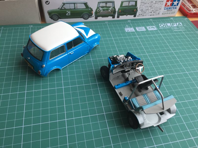 Krásná práce! Přál bych si být zručnější. Kdybych se totiž do takového modelu pustil, z MINI by vzešel nejspíš rodinný dům s garáží, nebo cokoliv jiného, ale onen chtěný výsledek by to zcela jistě nepřipomínalo. Proto mi nezbývá, než si jednou za čas udělat radost pouhým převodem z účtu na účet, a následným netrpělivým vyčkáváním a vyhlížením poštovní dodávky. Je to rozmar. Peníze by se daly využít jinak a mnohem lépe. Také z toho důvodu v 99% nenakupuji v eshopech, ale čekám, zda se neobjeví na aukčním portále nějaká bomba. Jako například na první pohled obyčejná Cararama. Firma však již modely nevyrábí. Představte si, že procházíte nabídky, až spatříte klasický Cooper ve zlatém laku s matně černou střechou a detailně propracovaným interiérem. Zkusíte tedy prolistovat strýčka Googla. Ten, nejen, že Vám další nabídky neposkytne, nezobrazí Vám ani žádné informace. Až objevíte jeden kousek na prodej na Ebayi za dvojnásobnou částku (+ obvykle velké poštovné) a v inzerátu se píše: "Jedinečný model, obtížně se shání." Čemuž nelze než uvěřit. Nebo se může stát. že se procházíte po Praze. Na hodinkách vidíte, že autobus Vám jede až za dvě hodiny. Nemáte tedy žádný cíl, jen se příliš nevzdálit od nádraží. Pak Vaše oči upoutá reklama na modelářství v zapadlé uličce... Dobrá, teď si trochu vymýšlím. Modelářství jsem objevil na internetu a řekl si, že se do něj podívám osobně. Cíl jsem tedy měl, ale hledání probíhalo tak, jak jsem popisoval. Po vstupu dovnitř, jsem nevěděl, kam se podívat dřív. Nějaké MINI bylo doslova v každém rohu. Corgi, Vanguards, Oxford... Vše, co člověk na vlastní oči v běžném obchodě neuvidí. A Pecka patří mezi místa, z nichž se s prázdnou neodchází. Dlouho jsem se rozmýšlel, až jsem zvolil 1275GT. Není to sice přesně to provedení, které už roky hledám, ale jsem za něj vážně rád. Poslední zmínka patří k modelu, na který hledím při psaní tohoto článku. Snem každého sběratele je vlastnit něco, co nikdo jiný nemá. Takového Modrého Mauriciuse. Možná se mýlím, možná je tento model ve vícero sbírkách, než si myslím. To však můj obdiv k němu nezmění. Přiznávám, že jsem měl trochu strach, když jsem ho objednal. Na Aliexpressu jsem musel platit kartou, s čímž nemám nejlepší zkušenosti. Všechno ale proběhlo, jak má. A za čtrnáct dní jsem se tváří v tvář setkal se soutěžním speciálem Aleca Poolea. Má vášeň mě pravděpodobně jen tak neopustí. Jednak proto, že je stále dost kousků, na které bych si přál se každý den dívat (asi před týdnem jsem do svých řad přivítal tolik očekávaný MINI Cooper S 2003 od společnosti IXO a mé oči jej sledují stále), ale také z toho důvodu, že jiné naplnění teď můj život zkrátka nemá. Jako by se všechno najednou zastavilo... A zůstalo nehnutě stát. Bez náznaku jakéhokoliv brzkého uvedení do chodu.