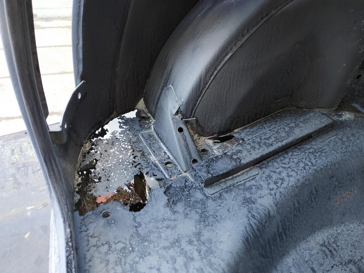 K mému údivu se rez ve větší míře projevila jen na plechu který drží dveře a na prahách a zadním blatníku.