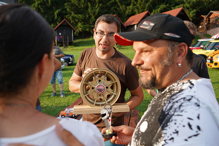 Vyhlášení si užili všechny plyšákem odměněné a vyznamenané děti i případní ocenění dospělí. Cenu za nejdotaženější design auta po právu získali opět Surmovi a hlavní cenu, tedy "putovní vačku" jinak již druhým rokem "putovní půlený disk Dunlop" spolu s menší odlitou kopií (která jim zůstane natrvalo) si odvezla rodinka Chocholovic.